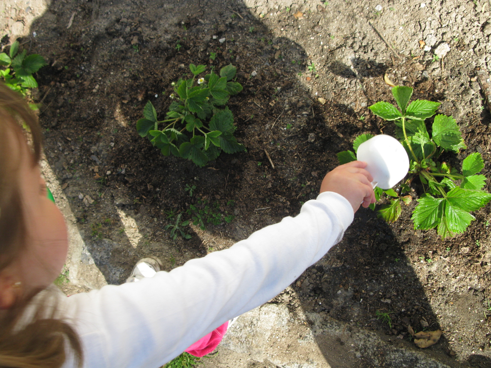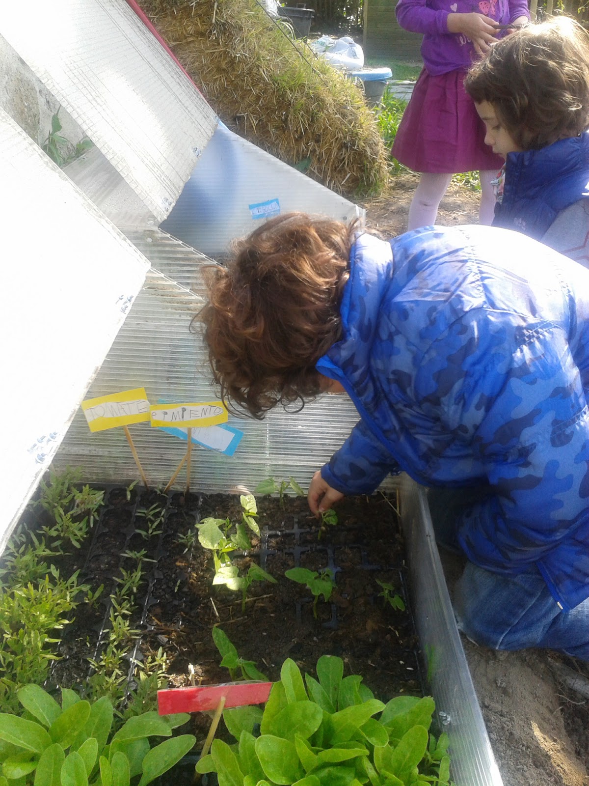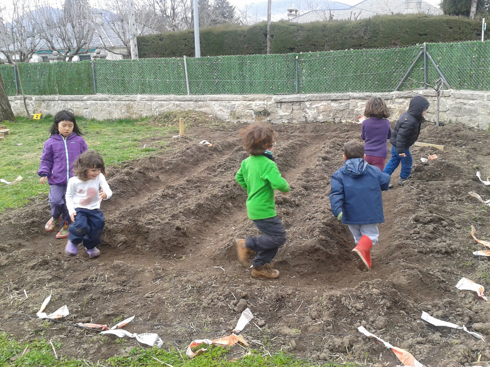 En el jardín, además de jugar como siempre a nuestros juegos preferidos, siempre hay algo que hacer relacionado con la jardinería o los semilleros. Plantamos, sembramos, regamos, cosechamos, quitamos hierbas malas, tratamos las plagas con productos naturales…
